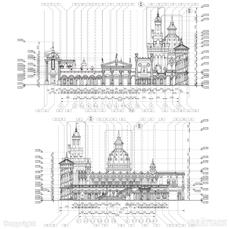 - 최종 CAD 계획, 섹션, 입면