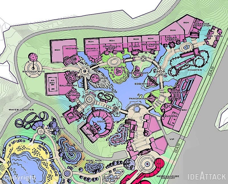 من أكبر مشاريع التطوير الترفيهي في الهند وتعتبر بوليوود استوديوز المخصصة بشكل كامل لصناعة الأفلام الأضخم في العالم. وتضم استوديوهات بوليوود مدينة ملاهي ترفيهية مستوحاة من عالم السينما، ومركزًا لمحاكاة حياة عالم الأفلام، ومنتجعًا بطابع مميز، ومدينة ملاهي مائية. وتولّت IdeAttack في هذا المشروع مهمة تقديم خدمات عمل المخططات الرئيسية وتصميم المفهوم وتطوير معالم الجذب والمخططات المعمارية ذات النسق الخاص.
