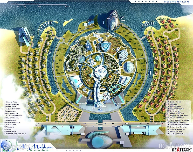 Trải rộng trên diện tích hơn 74 mẫu Anh, điểm đến độc đáo này đem lại trải nghiệm mua sắm, ăn uống, chỗ ở cao cấp thuộc đẳng cấp thế giới, cũng như hoạt động giải trí bao gồm một công viên chủ đề về các truyền thuyết của Ả-rập, một tòa tháp khách sạn nổi bật, khu nghỉ dưỡng xa hoa, trung tâm hội nghị hiện đại và hai cộng đồng dân cư hào phóng. Trong dự án này, IdeAttack thực hiện quy hoạch tổng thể, sơ đồ kiến trúc, xây dựng điểm tham quan và thiết kế phương án.