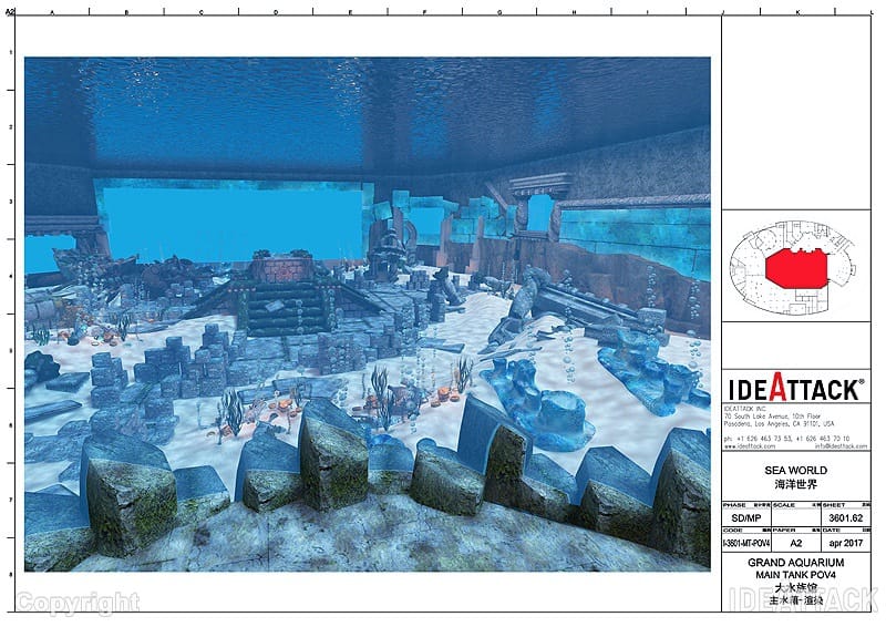 Ngay cạnh Công Viên Biển Đảo Hoa Đại Dương tại Hải Nam, Trung Quốc, Đại Thủy Cung là một điểm tham quan trong nhà khổng lồ, là nơi sinh sống của một loạt sinh vật biển gây ấn tượng sâu sắc, trong đó có một hệ sinh thái dải san hô ngầm, cá mập và cá đuối. Trong dự án đặc biệt này, IdeAttack thực hiện quy hoạch tổng thể, thiết kế ý tưởng và xây dựng điểm tham quan/nơi trưng bày.